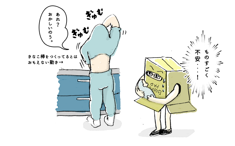 きな粉棒をつくってるとは思えぬ不穏な動き。これはものすごく不安...!